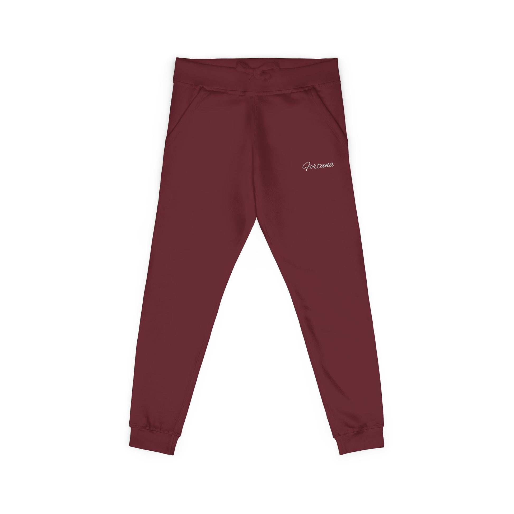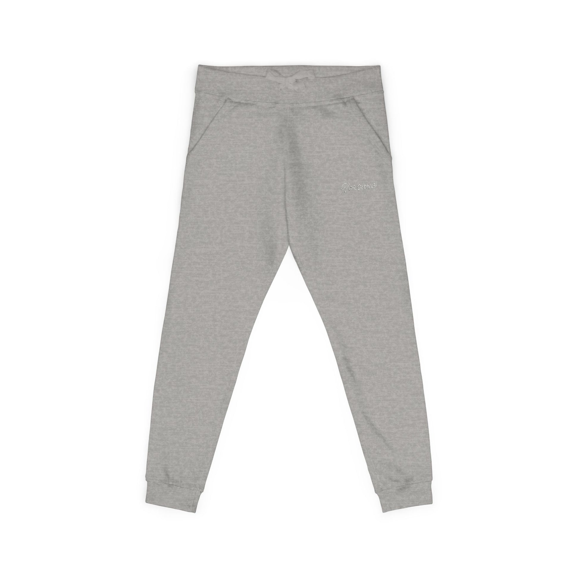Soft olive fleece joggers with script logo embroidery. Cozy unisex sweatpants for lounging, workouts, and everyday wear.